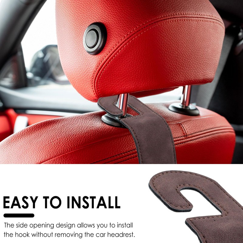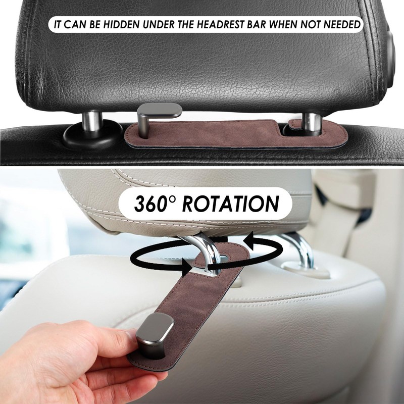 - [High Quality Metal and Faux Leather] This car headrest hook is made of high quality metal core and faux leather, sturdy and stylish, perfect for mounting on car headrests for your hanging needs.
