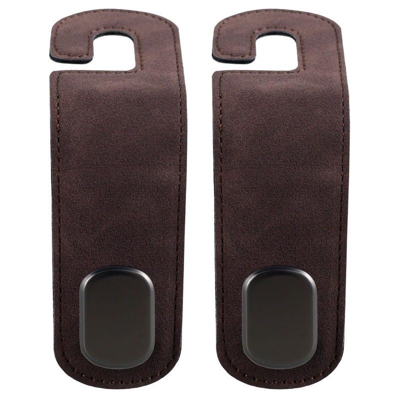 - [High Quality Metal and Faux Leather] This car headrest hook is made of high quality metal core and faux leather, sturdy and stylish, perfect for mounting on car headrests for your hanging needs.