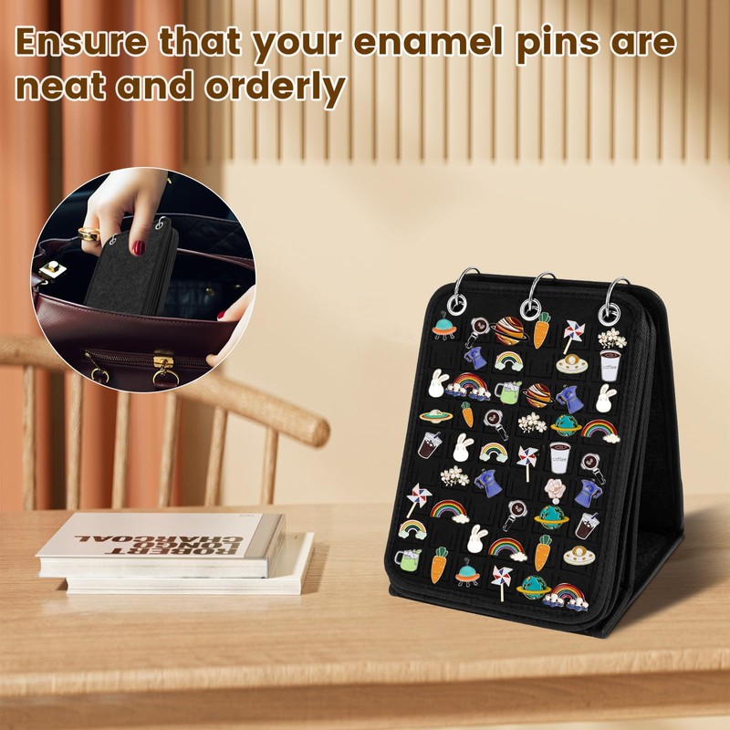 - [Quality Material] This enamel pin display pages is made of high quality velvet felt material, which is durable, not easy to deform and soft to touch, ensuring your enamel pins are neatly organized.