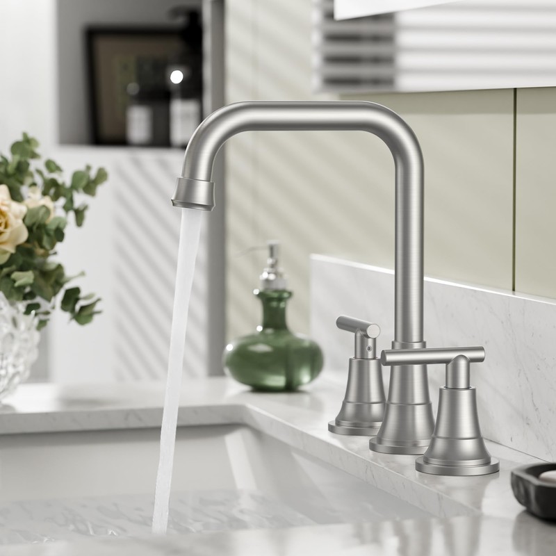 - DUREABLE WIDESPREAD BATHROOM FAUCETS: Anti-drip ceramic valves tested for 500,000 cycles and extreme temperatures. Corrosion and tarnish-resistant finishes of bathroom sink faucet for long-lasting performance.