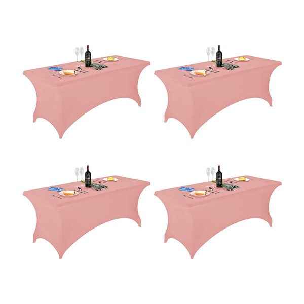 FORLIFE 4Pack Spandex Table Covers 6ft,Fitted Tablecloth for 6ft Rectangular Tables, Stretch Patio Table Covers, Universal Spandex Table Cover for Wedding, Banquet, Party (6ft, DustyRose)