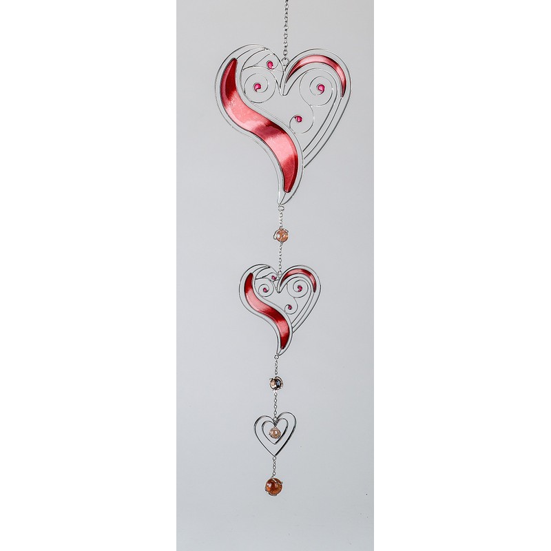 Formano Modern Decorative Hanging Triple Heart Hanging Window Decorative Tiffany Red/Silver, 58 cm
