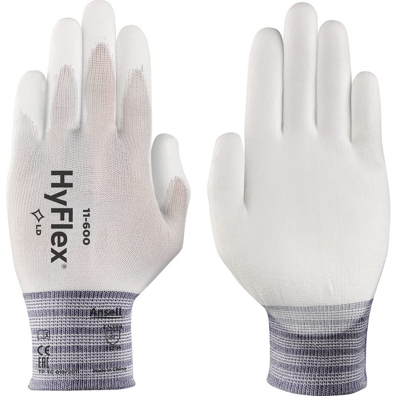 Further information: Design: HyFlex 11-600. Colour: white. Size: 8. Protection according to EN 388 3.1.3.1. Brand: Ansell