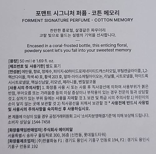 Forment Perfume 50ml (Cotton Memory) Women's Perfume Olive Young / 포맨트 퍼퓸 50ml (코튼메모리) 여성향수 올리브영