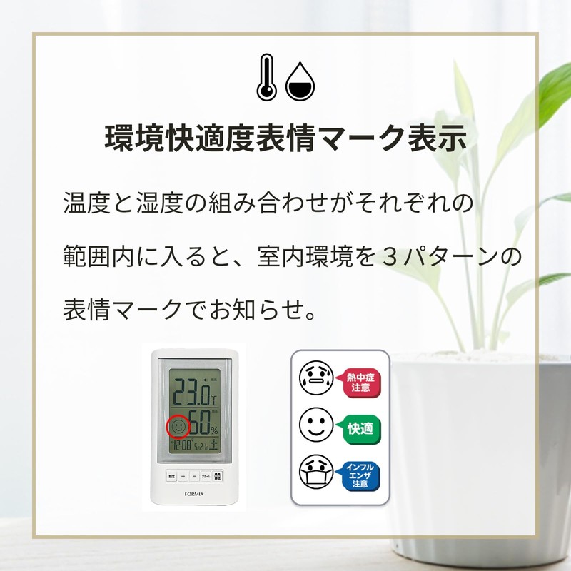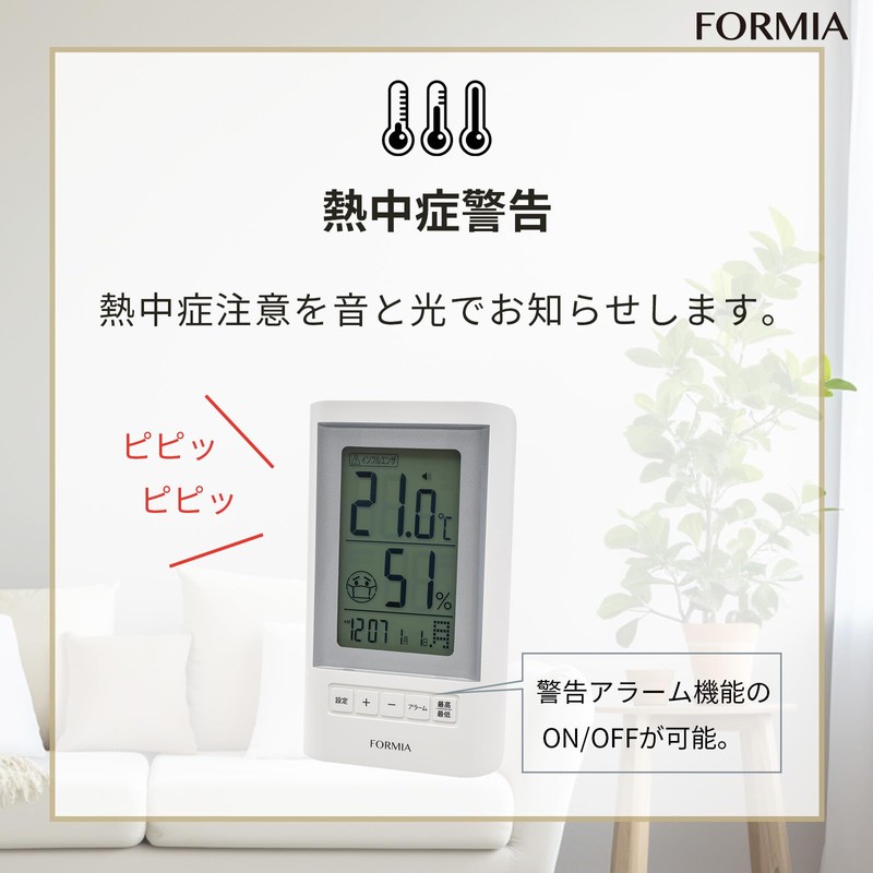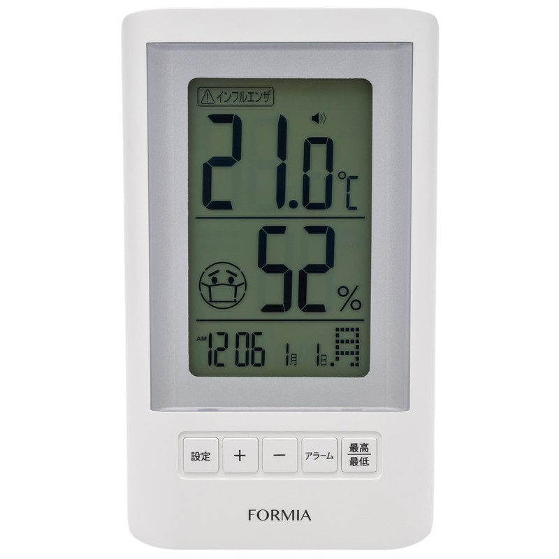 Formia HO-005 Thermometer/Hygrometer, Table Clock, Tabletop, Wake Up, Heatstroke Alarm, Thermometer, Hygrometer, Backlight Function, Date and Time Signal, Heat Stroke Prevention, Stand, Hanging,