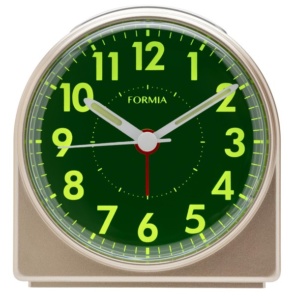 Formia HT-A048W-G Table Clock, Alarm Clock, Easy to Read, Continuous Second Hand, Electronic Sounds, Luminous Collection Dial, Analog, Champagne Gold
