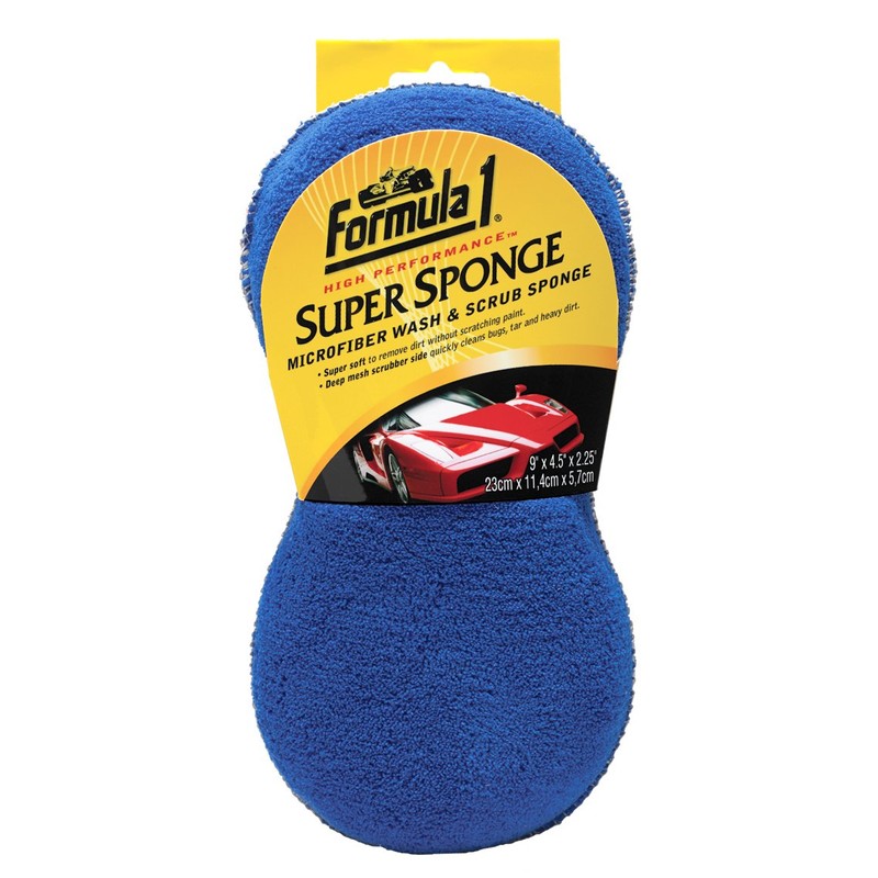 - EASY TO USE - The Formula 1 Super Sponge is made of high-quality microfiber for effective dirt removal. It comes in a contoured shape for an easy grip even when it's wet! This sponge is great when used with other Formula 1 auto care products. Have your car look brand new again in no time! Clean more with less effort.