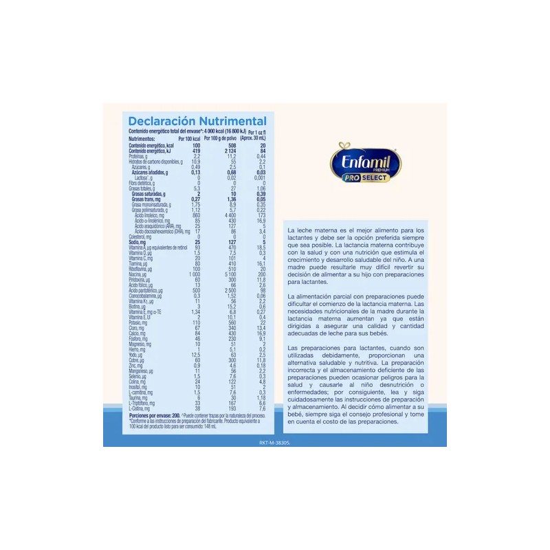 Enfamil Pro Select Sin Lactosa, es una fórmula en polvo para lactantes a partir del nacimiento con necesidades especiales de nutrición, puede ser usada para lactantes con intolerancia a la lactosa.