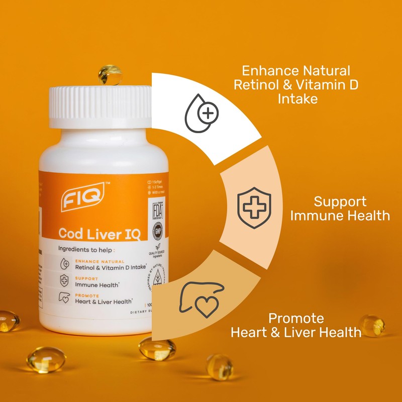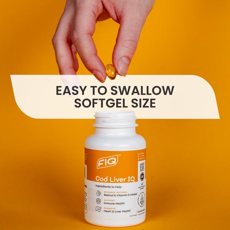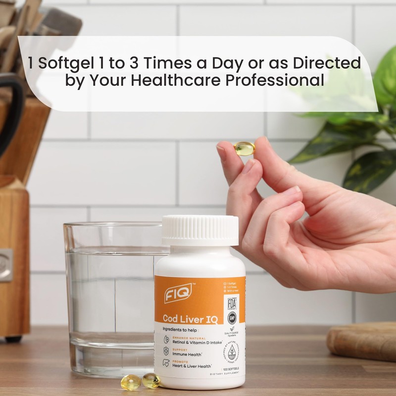 Formula IQ - Cod Liver IQ: Cod Liver Oil Supplements - Natural Source of Vitamins A & D and Omega 3 Fatty Acids - Support Heart, Liver, & Immune Health - Cod Liver Oil Softgels (100 Ct)