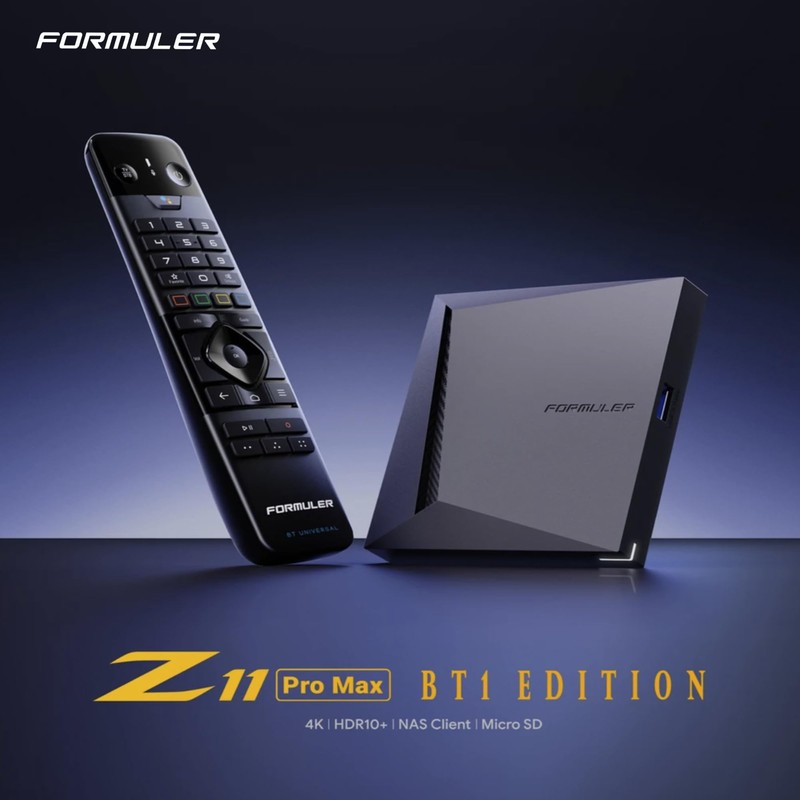 - Box contents: 1 x Formuler Z11 Pro Max BT1 Edition, 1 x Bluetooth remote control, 1 x HTS e-com HDMI cable, 1 x power supply, 1 x external infrared receiver, 1 x batteries