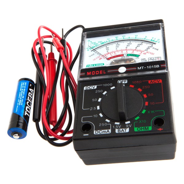 - Choose from 5 functions and 14 measuring ranges to test DC/AC-Voltage, DC current, resistance and battery strength