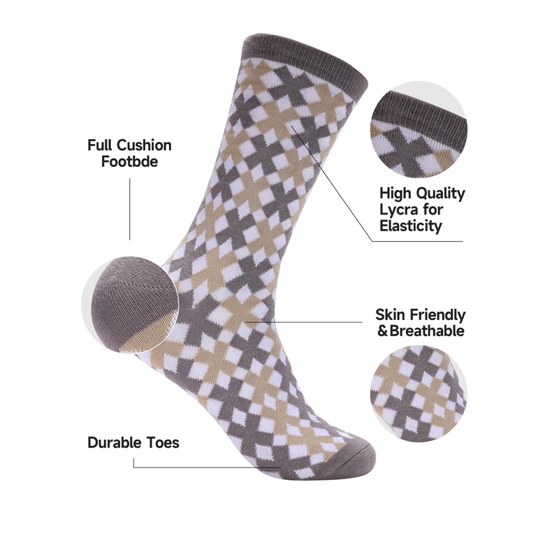 • Comfort and Durability:At 168 stitches, our men's mid:calf dress socks are designed for ultimate comfort, cushioning and toughness. Lycra adds elasticity, double:stitched toes, and polyamide to make them durable and withstand any situation