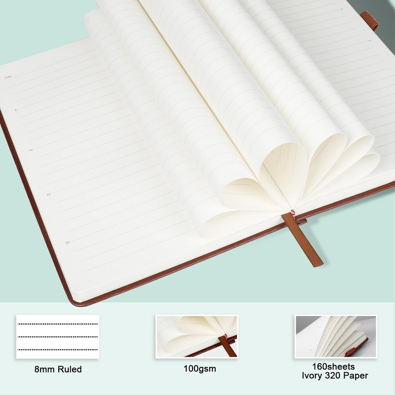 - đź““PERFECT NOTEBOOK - 5.7 x 8.3 inches, 8mm college ruled writing line, 100gsm premium thick acid-free paper, 320 pages/160 sheets, Classic A5 size.