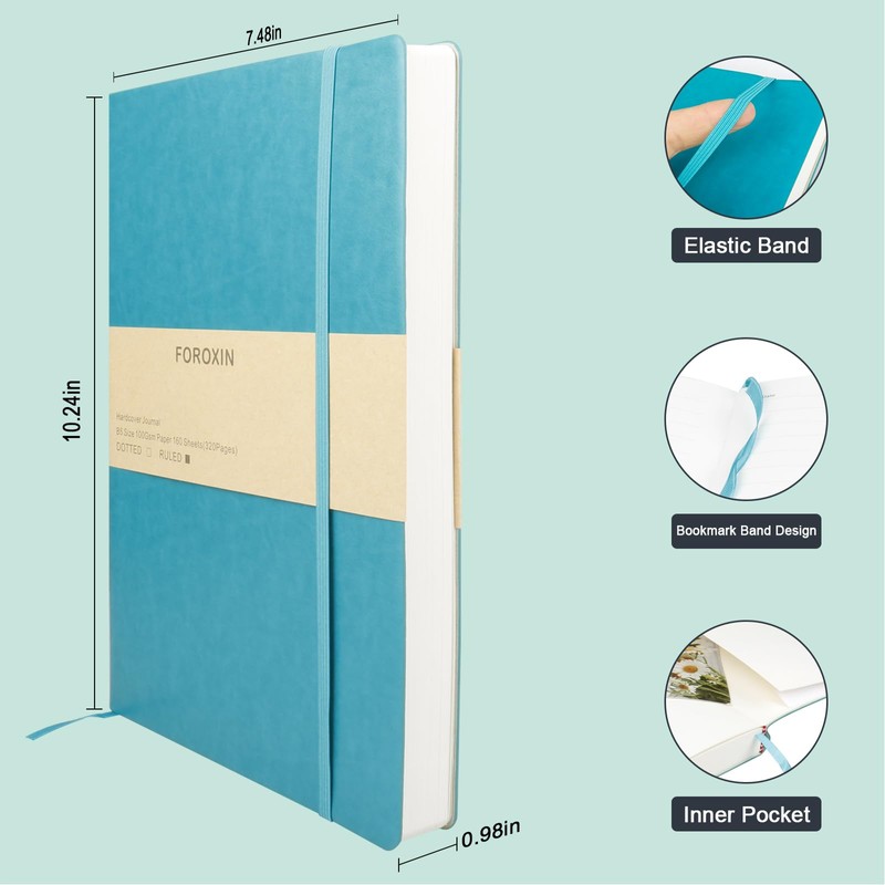 foroxin Lined Journal Notebook, (Turquoise), 320 Pages, B5 Medium 7.48 inches x 10.24 inches - 100 gsm Thick Paper, Hardcover