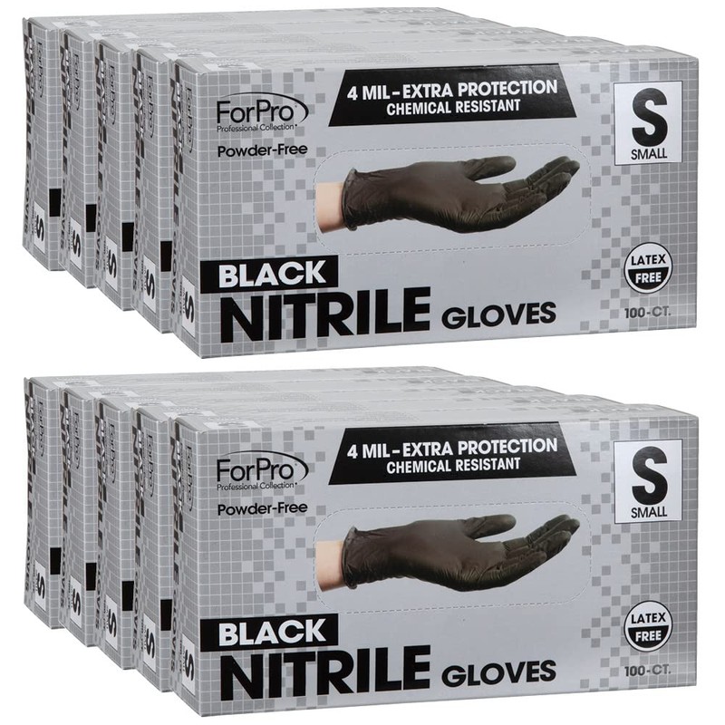 ForPro Disposable Nitrile Gloves, Chemical Resistant, Powder-Free, Latex-Free, Non-Sterile, Food Safe, 4 Mil, Black, Small, 1000-Count