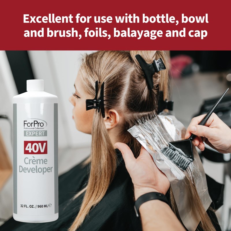 ForPro Expert 40 Volume Crème Developer for Hair Lightening, Gray Coverage & Color Deposit with Maximum Lift, 32 Fl Oz