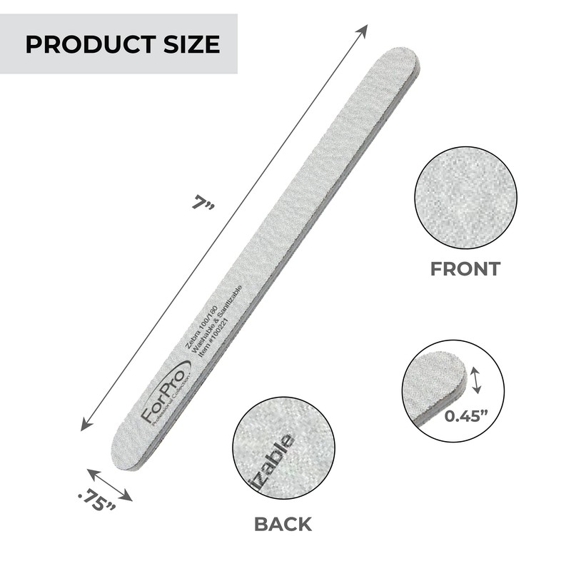 ForPro Zebra Foam Board, 100/180 Grit, Double-Sided Manicure Nail File, 7” L ...
