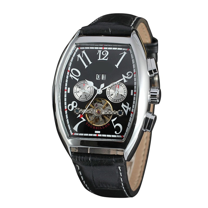 FORSINING Trendy Male Automatic Watch Calendar Display Analog Wristwatch(Black Silver)