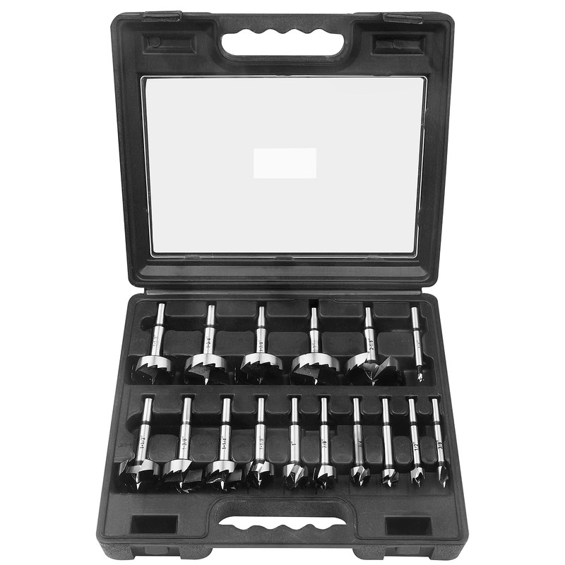 - 【COMPLETE SPECIFICATIONS】Forstner bit set includes 16 pcs, most commonly used sizes: 1/4" (6.3mm), 3/8" (9.5mm), 1/2" (12.7mm), 5/8" (15.8mm), 3/4" (19.0mm), 7/8" (22.2mm), 1" (25.4mm), 1-1/8" (28.5mm), 1-1/4" (31.7mm), 1-3/8" (34.9mm), 1-1/2" (38.1mm), 1-5/8" (41.2mm), 1-3/4 (44.4mm)", 1-7/8" (47.6mm), 2" (50.8mm) and 2-1/8 (53.9mm), the bits make clean cuts and easily stored between jobs. Helps you drill great, clean, flat bottom holes in wood quickly.