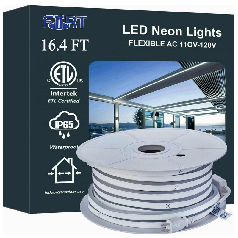 FORT White neon strip lighting - 120leds/m dotless ETL IP65 waterproof exterior neon led lights for outdoor use - weather-resistant rope lighting - 120v led strip lights for home and commercial 16.4FT