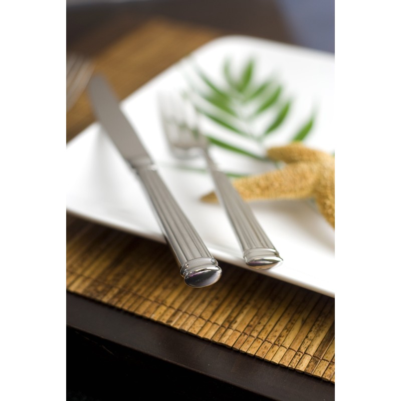 Fortessa, Inc. is a leading designer, developer and marketer of quality tableware for the high-end commercial foodservice market globally, as well as for the luxury consumer market. The company was founded in 1993 as the Great American Trading Company, Inc., focusing from the very start on quality dinnerware for culinary professionals and for the home. In 1997, the company expanded its offerings to flatware, glassware and tabletop accessories, becoming a “total table” operation, and pioneered the concept of specialty dinnerware for the commercial foodservice market with a “Cuisine Collection” of square, rectangular and oval shapes. Fortessa is an integrated designer, developer and marketer of tabletop goods and accessories. Brands and products under the Fortessa banner include Fortessa Dinnerware, the Accentz collection, Fortessa Metalware, Schott Zwiesel Crystal Glass and Fortessa Design and Value. Our products offer a combination of quality and value unmatched in the tabletop industry. Fortessa brings a passion for design and exacting standards of performance to the manufacturing of its metalware. We specialize in heavy gauge 18/10 stainless steel flatware that features heft, balance in the hand, and pleasing design. 18/10 stainless steel offers greater resistance to stains and rust and a superior shine. Fortessa flatware features 360° design in every piece: the design carries from the front to the back. Each piece features polished handles, edges and fork tines, for longer wearing use. The fork tines are sharp and the knives feature finely serrated edges and solid handles. Each 5 piece set includes a table fork, salad/dessert fork, table knife, dessert/soup spoon, and a coffee/ tea spoon. The Fortessa Doria pattern features a traditional formal setting with vertical design in the handle and a balanced bold weight. Each piece is dishwasher safe and features a Fortessa makers mark, which is a craftsman symbol of quality.