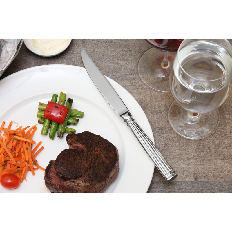 Fortessa Doria 18/10 Stainless Steel Flatware Solid Handle Steak Knife, Set of 12