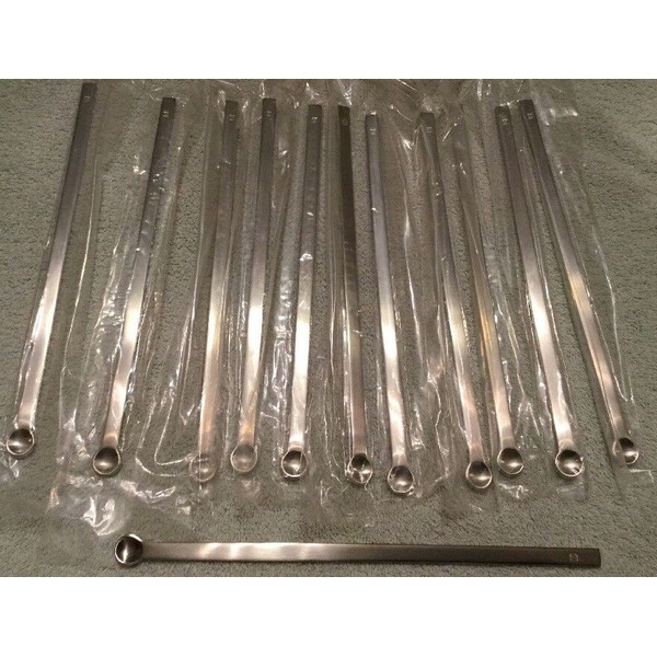 Beautiful set of 12 brushed stainless spoons, possibly used as drink stirrers. They measure 8” long. All marked FORTESSA 18/10. Great summer iced tea stirrers!!!