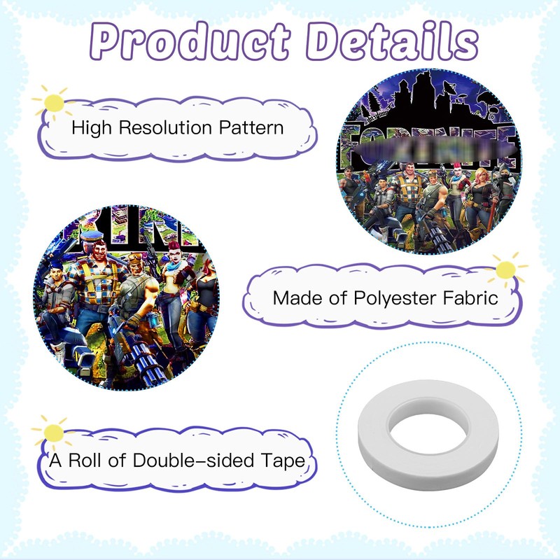 - 👸【Easy to use】The installation of backdrop for birthday party is convenient and simple. Stick the double-sided tape on the back of the background cloth, and then stick the background cloth where you want to decorate it.