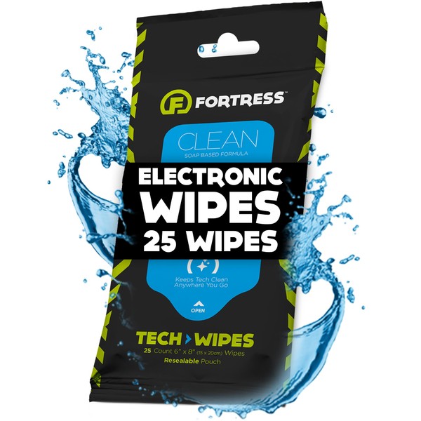 Fortress Electronic Wipes (25 ct.) To-Go Tech Wipes for Screens, Phones, Keyboards, TV Monitors, Computer Screens, and More [Travel Size] Skin-Safe