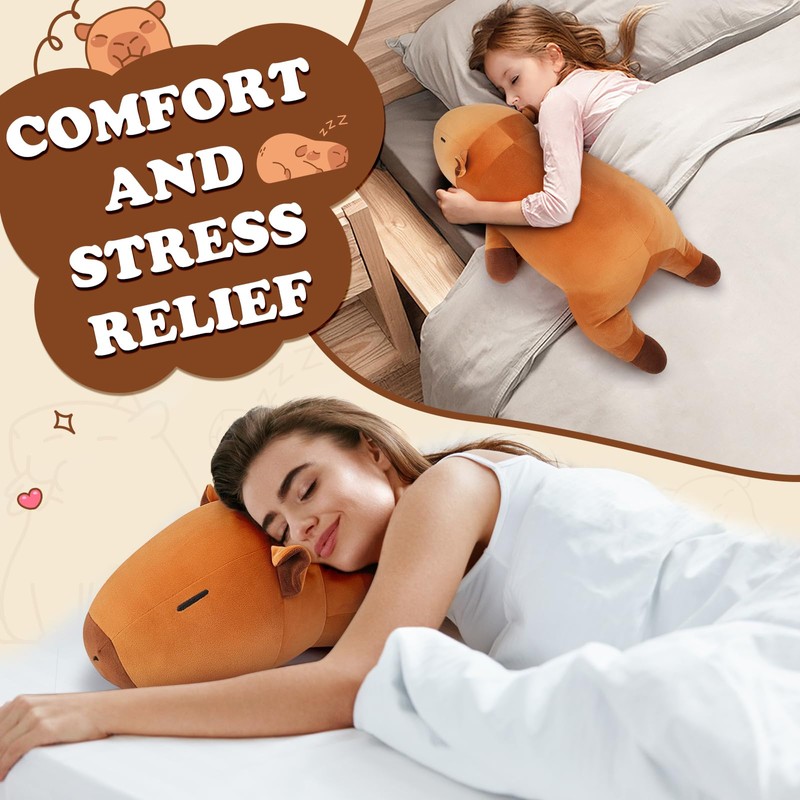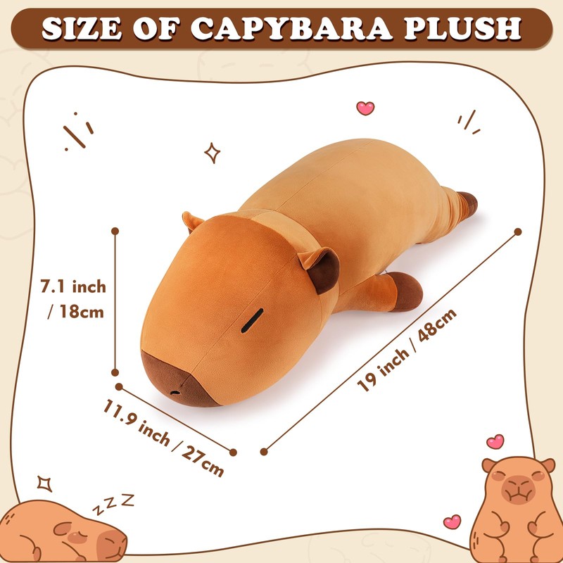 • 18.89 inch Capybara plush toy stuffed plush hugging pillow is huggable and very soft, you can use it as a pillow. Stuffed Capybara toy can also be use a soft decoration in your house or office. A Realistic Animal Pillow / Plush Toy! A soft gift for kids and adults in Christmas, Valentines, birthday, New Year ...