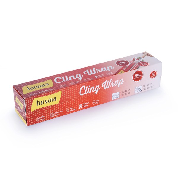Forvara Cling Wrap Non-PVC Plastic Wrap for Food - 300 Square Foot Roll with Slide Cutter
