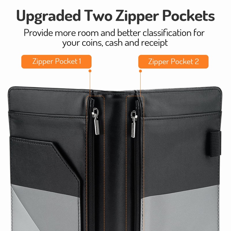 - Upgraded Two Zipper Pockets: Unlike other brands, Forvencer server books are designed with two secure zipper pockets. Two zipper pockets provide more room and better classification for your coins, cash and receipts.