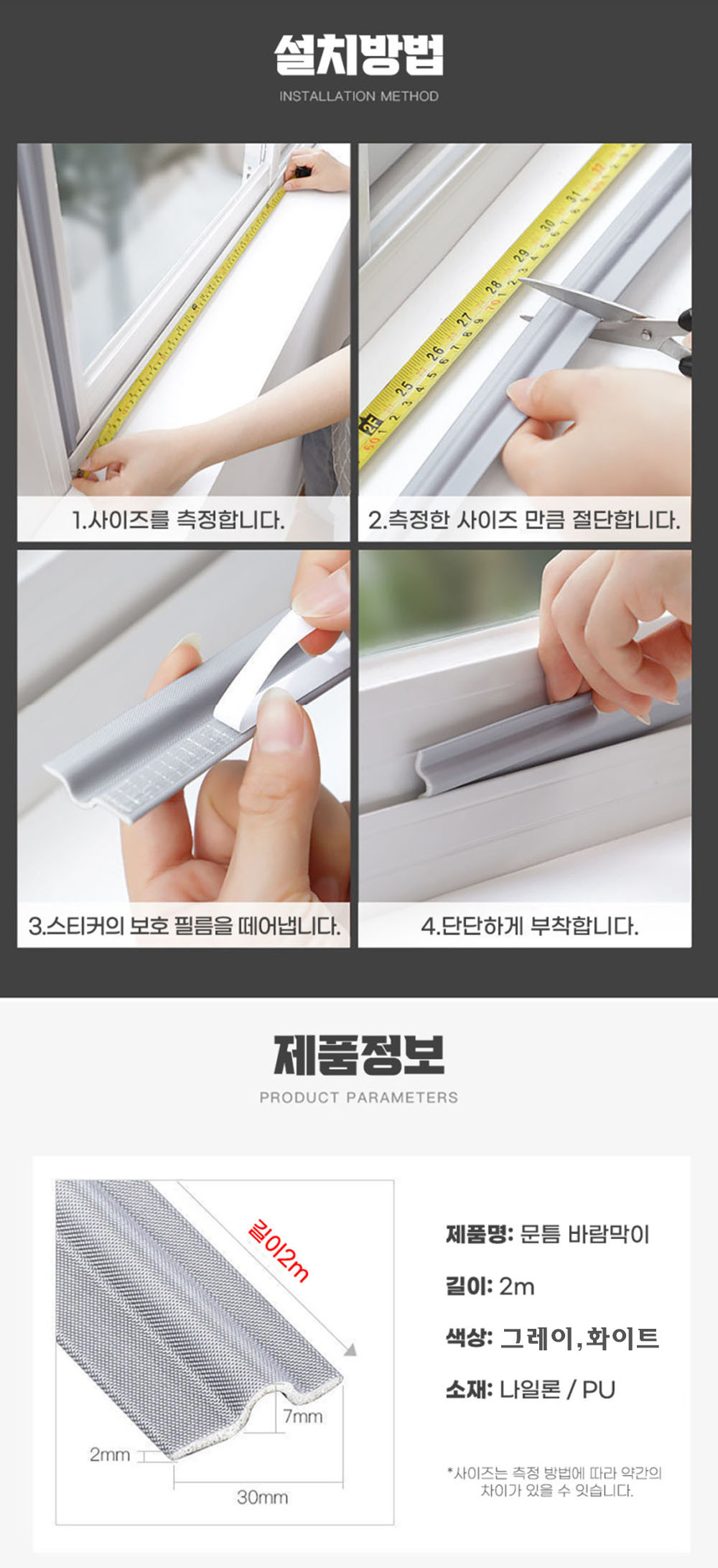 Forward Tech Window & Door Draft Stopper Sealing Strip (2m) 2M/Gray 10ea