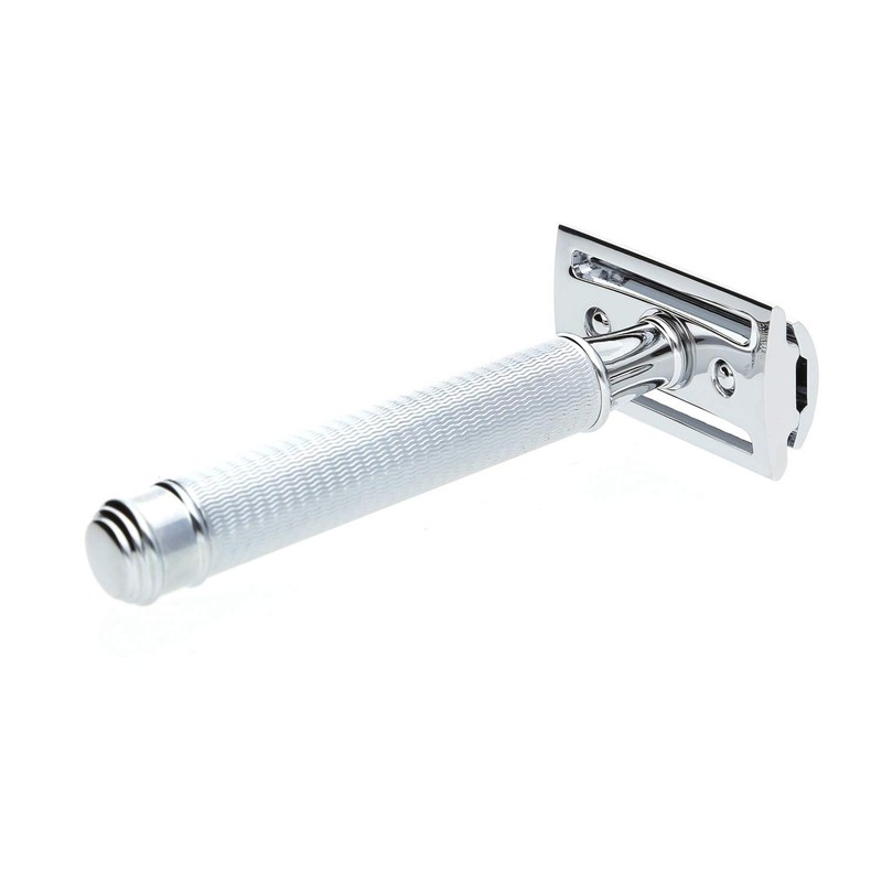 - Shave: the safety razor with the closed comb protects the skin and ensures a high degree of thoroughness of the shave. With its double-sided blade head, good weight and handy, slim handle, it sits comfortably and non-slip in the hand, making it perfect for both men and women.
