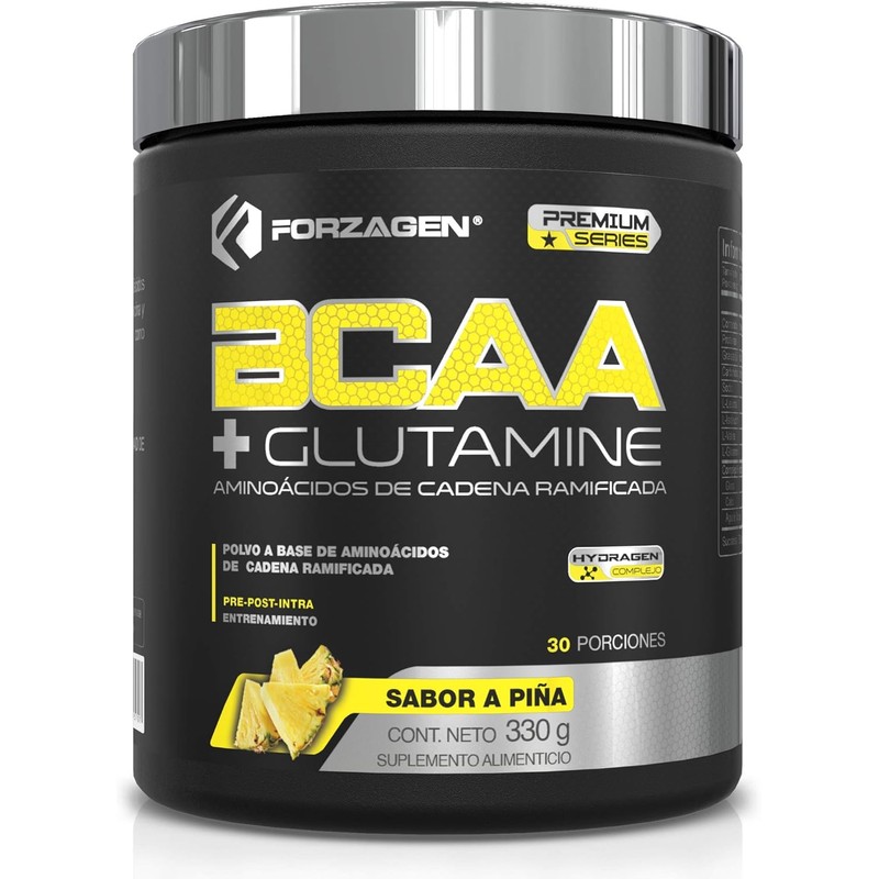 Forzagen | Aminoácidos BCAA + Glutamine | 8 g de BCAA 2:1:1 | 2 g de L-Glutamina | 30 Servicios | Sabor Piña| Post-Intra Entrenamiento | Con Complejo de Hidratación Hydragen® | 330 g