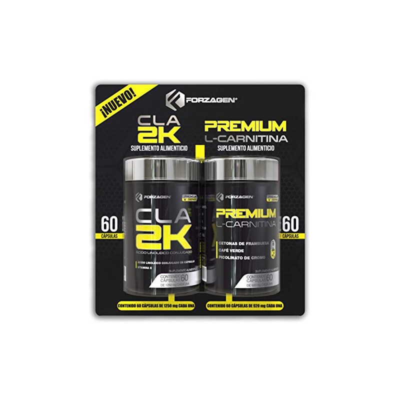 🌟 ⭐ Forzagen CLA-2K + Premium L-Carnitina Two Pack - 60 Capsulas c/u | L-Carnitina Capsulas con Cetonas De Frambuesa, Café Verde y Picolinato De Cromo | CLA Capsulas Acido Linoleico Conjugado con Vitamina E | 60 Dias de Suplementacion | Pre Entrenamiento | Suplemento Gym ⭐ 🌟