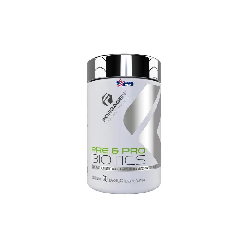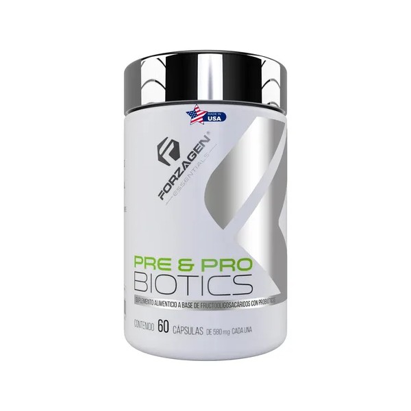 Forzagen Essentials Pre&Probiotics es una fórmula avanzada a base de prebióticos y probióticos diseñada para hombres y mujeres. Contiene 10 billones de lactobacilos vivos por porción, incluyendo fructooligosacáridos e inulina de achicoria, que contribuyen a mantener una flora intestinal saludable y fortalecer el sistema inmunitario.