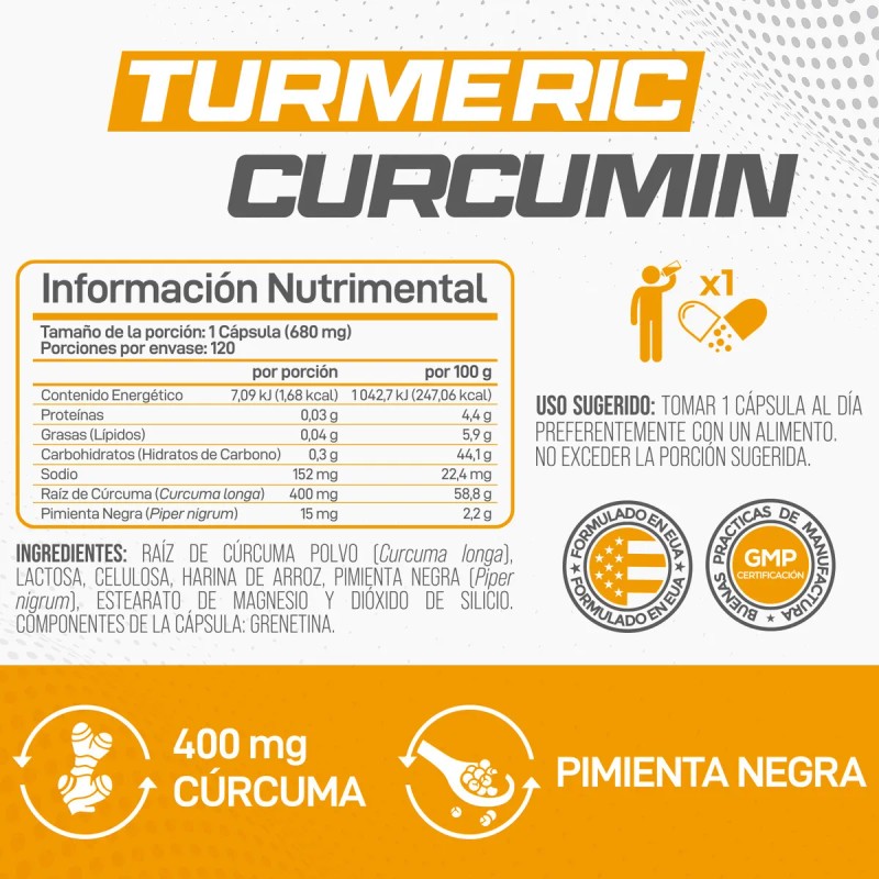 Cada frasco de Turmeric Curcumin contiene 120 cápsulas.
