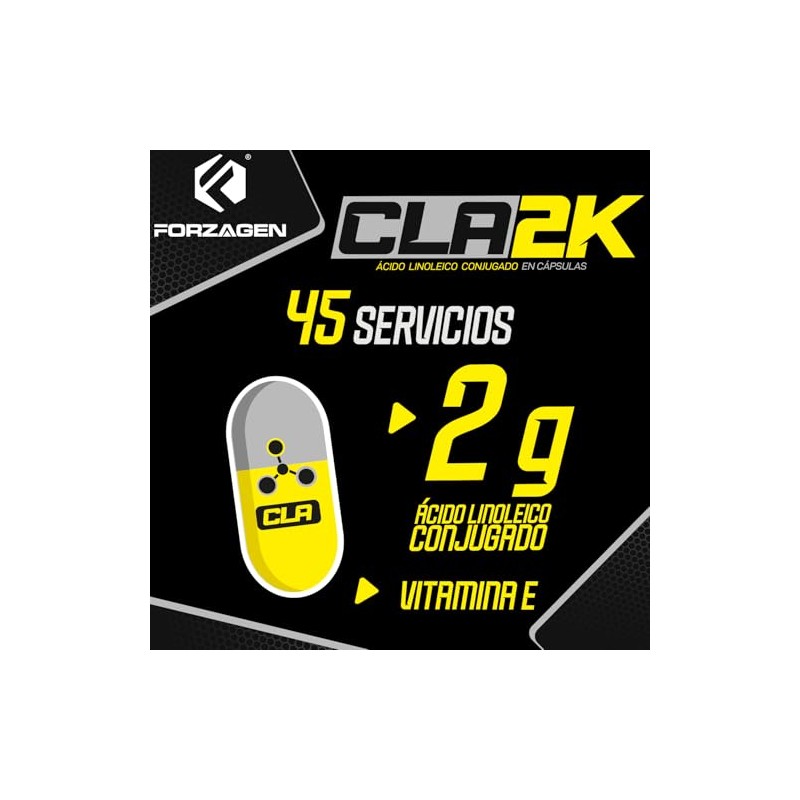 Forzagen | Suplemento Alimenticio CLA-2K | 2 g de Ácido Linoleico Conjugado | 45 Servicios | Adicionado con Vitamina E | Suplemento Natural | 90 Capsulas (90 Caps)