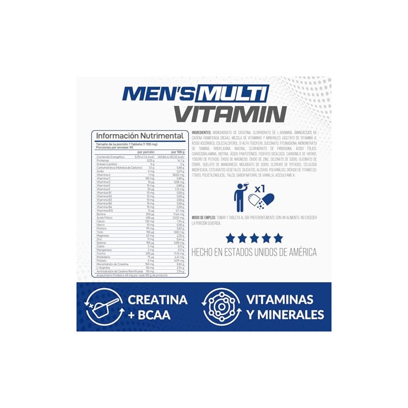 Forzagen Suplemento Alimenticio Mens Multivitamin Multivitamnico para Hombre 90 Servicios Con Complejo para Energa y Rendimiento - Creatina BCAA
