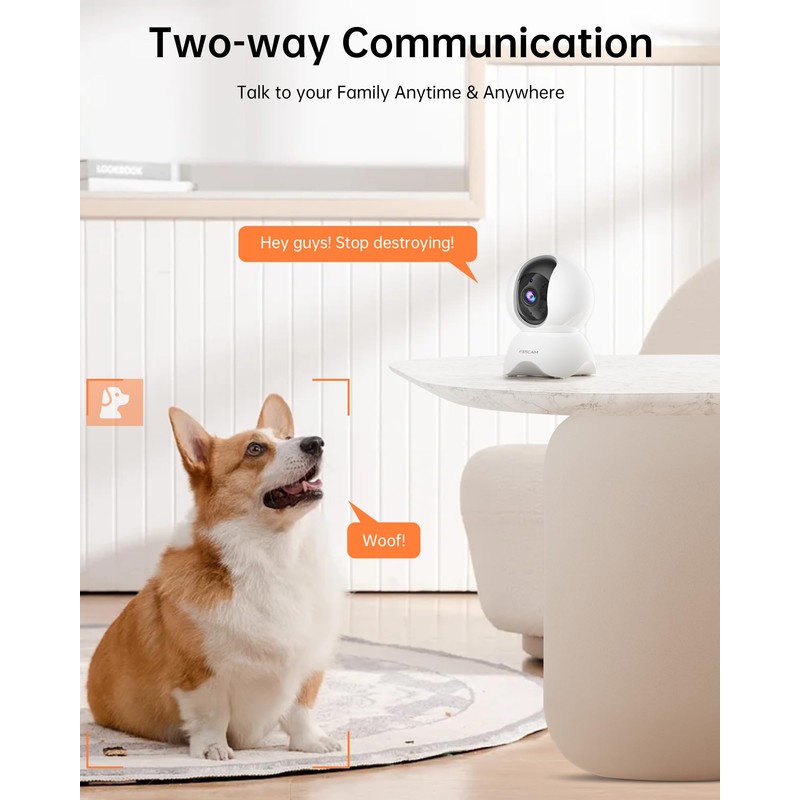 FOSCAM 3K 5MP WiFi Pet Cameras for Home Security, 2.4GHz Indoor Camera Baby Monitor with 360° Pan Tilt, 2-Way Audio, 6X Digital Zoom, Night Vision, AI Human Detection, Cloud & SD Card Storage