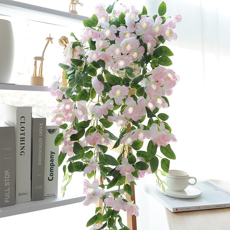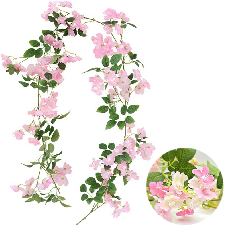 FOSDICK 175 cm Artificial Flowers Hanging Artificial Fake Cherry Blossoms Decoration Wine Hanging Silk Flower Artificial Flower Hanging Plant Artificial Flowers Balcony Plants for Outdoor and Indoor Wedding Wall Bad Decoration