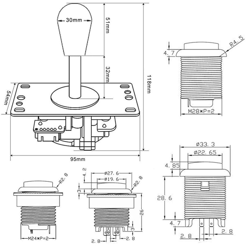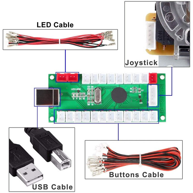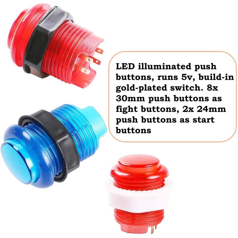 • Includes: 4 x 5Pin Arcade Joystick + 4 x USB Encoder + 32 x 28mm Larger LED Push Buttons + 8 x 24mm Small LED Push Buttons.