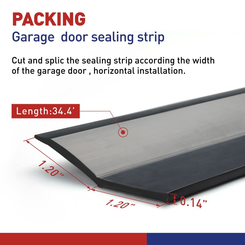 - WIDE APPLICATION - garage door sealing strip is suitable for different shapes of garage doors. Garage door seal 34.4 FT length, suitable for garage sizes 10'X7' 10'X8' 16'X7' 16'X8' 18'X7' 18'X8', provide all-around protection for your garage.