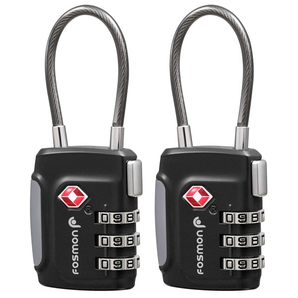 Fosmon TSA Approved Cable Locks for Luggage, Suitcase, Gun Case Lock with Push Release Button, 3 Digit Long Shackle Combination Wire Lock for Backpack