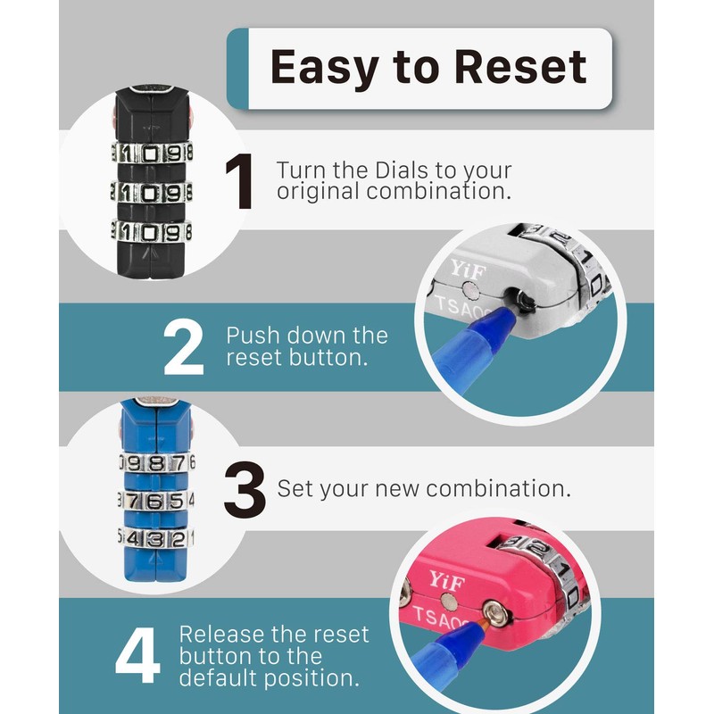- [UNIVERSAL COMPATIBILITY] In addition to travel, this TSA accepted lock can be used for various lockers, such as hostels, gyms, water parks, gun cases, etc. for safety and security.