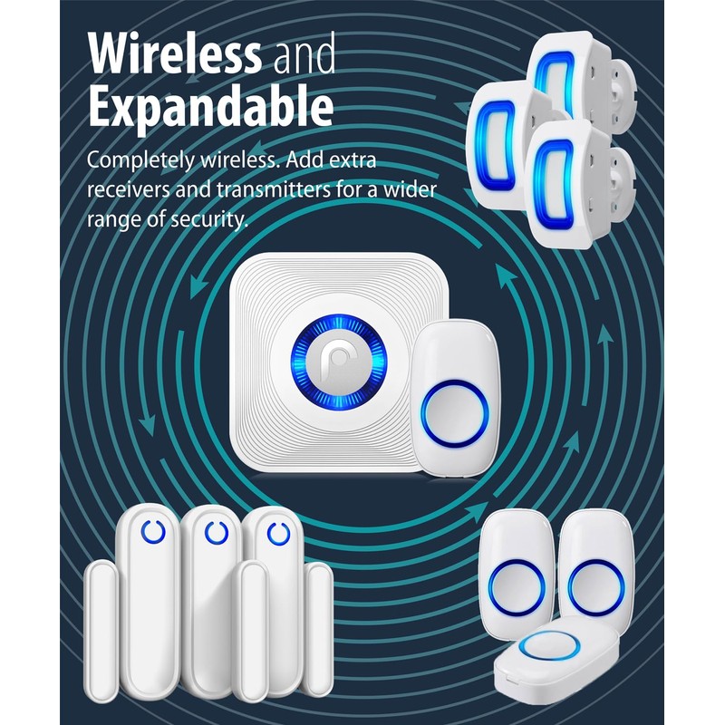 - [MONITOR THE AREAS MOST IMPORTANT TO YOU WITH WAVELINK WIRELESS DOOR CHIME] WaveLink wireless door chime offers a generous detection area of nearly 400FT/120M. Big enough for to cover every window and door in your house. Expand the system by pairing up to 10 receivers to one door sensor, or 10 door sensors to one receiver. The choice is yours.