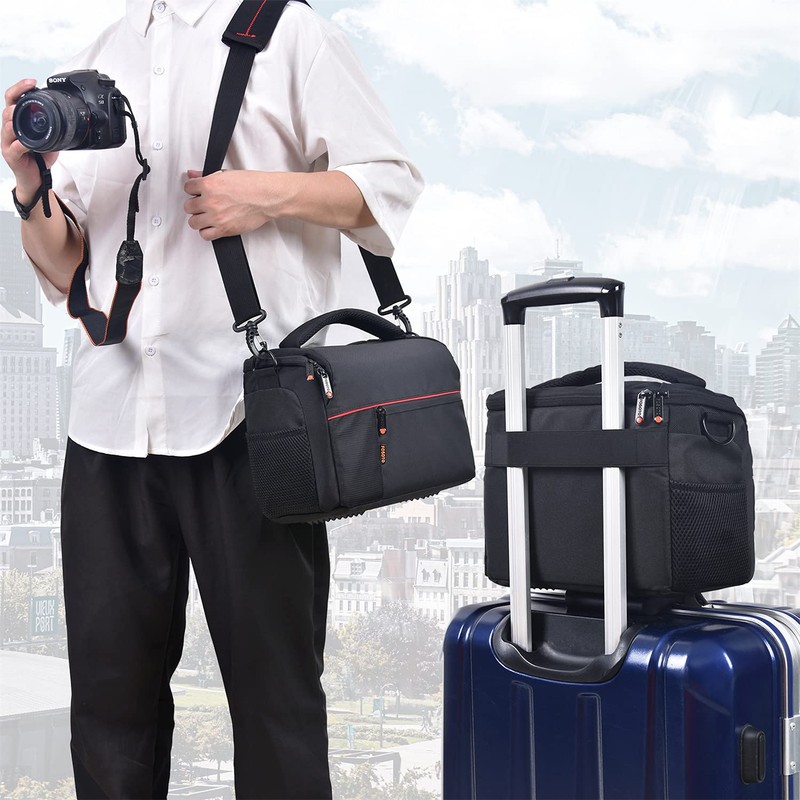 - Large storage capacity: inner size (length x width x height): 27 x 17 x 15 cm, can hold 1 SLR/DSLR camera body + 2 or 3 lenses + iPad + phone + accessories.