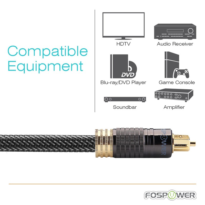 - [PREMIUM QUALITY DESIGN] Unlike others, FosPowerâ€s Toslink cable is designed with high-quality parts. With metal connections and a durable nylon mesh jacket this cable is optimized for maximum protection against wear and tear.