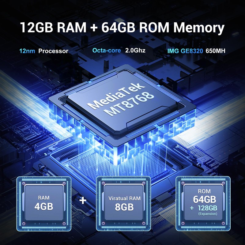 - MT8768 Octa-Core Processor + 12GB RAM + 64GB ROM / 128GB: This rugged smartphone gains MediaTek 8768 chipset, 8-core CUP(8*Cortex-A53 2.0GHz + 1.5GHz), which making the phone performance smoothly, running multi-tasks etc. This FOSSIBOT F105 equiped with up to 12GB RAM (4GB standard RAM +8GB virtual RAM) for multi-processing and fluent running of applications. Internal storage memory is 64GB( can be expanded to 128GB), which can store more content ,storage without worrying about insufficient space.